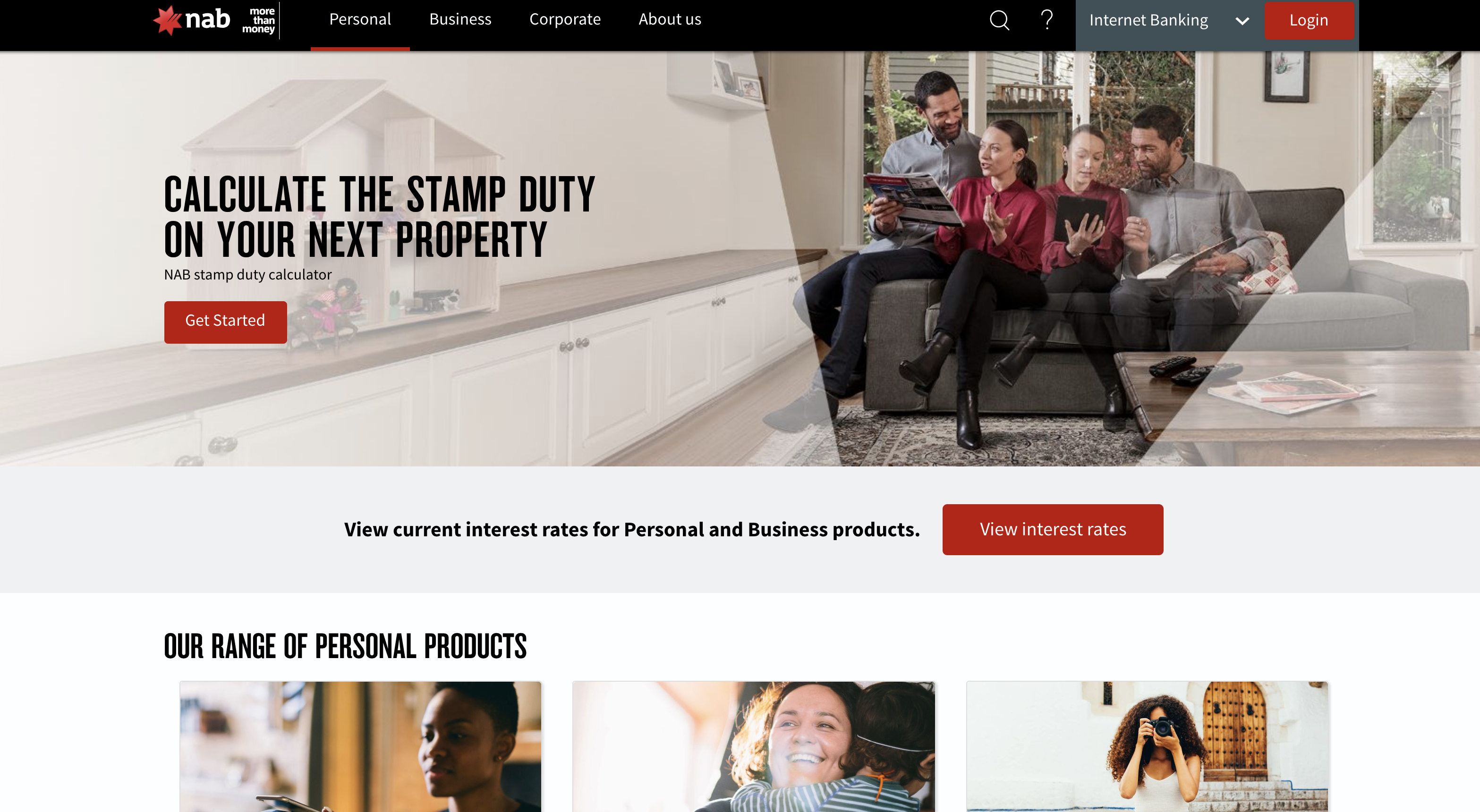 NAB (2019). NAB Homepage [Screenshot] retrived from https://www.nab.com.au/